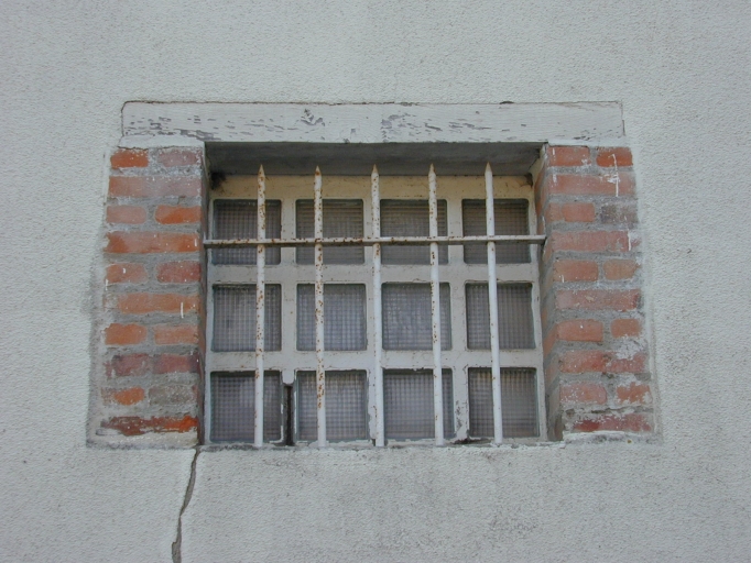 Détail de la fenêtre grillée de la façade postérieureImmatriculation