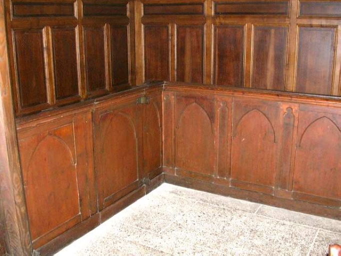 Décor de choeur : 2x2 stalles, paire de bancs de choeur, paire de bancs, lambris de demi-revêtement,