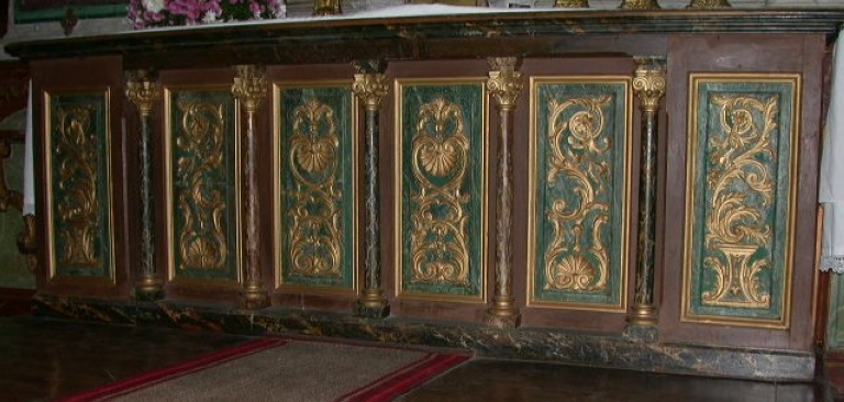 Ensemble du maître-autel : autel, retable, tabernacle, 2 gradins d'autel, 2 degrés d'autel,