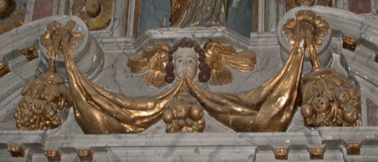 Ensemble de l'autel de la Vierge : autel, tabernacle, 2 gradins d'autel, retable,