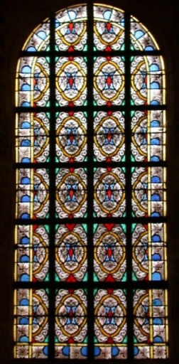 Verrière de la baie 1 : grisaille géométriqueImmatriculation