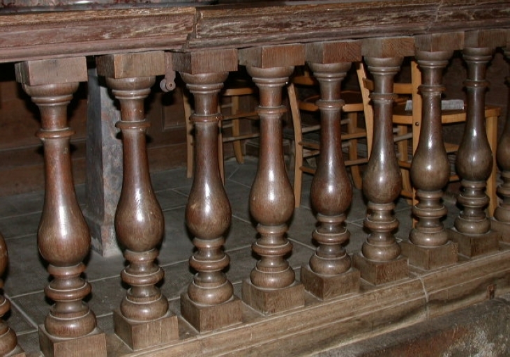 Baldaquin des fonts baptismaux, lambris de demi-revêtement et clôture,