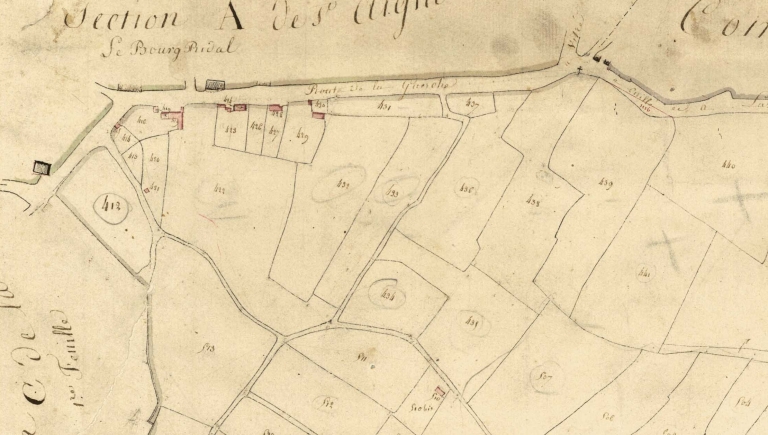 Partie sud du faubourg sur le cadastre de 1827Immatriculation