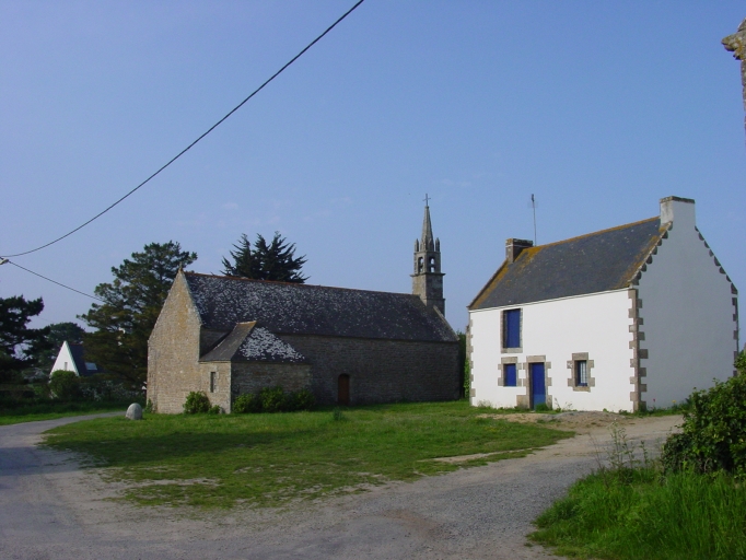 Vue générale nord sur les anciens communs où est planté un lech, et où fut construite la nouvelle chapelle en 1866.Immatriculation