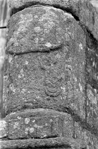 Partie ouest, élévation sud. Décor sur rampe de l'escalier, en 1975.Immatriculation