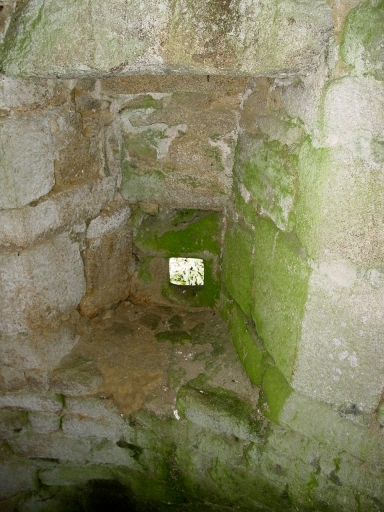 Ancien logis, tour d'escalier sud-ouest : bouche à feu de forme quadrangulaire, vue intérieure.Immatriculation
