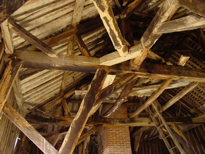Donjon, détail charpente, partie supérieure.Immatriculation