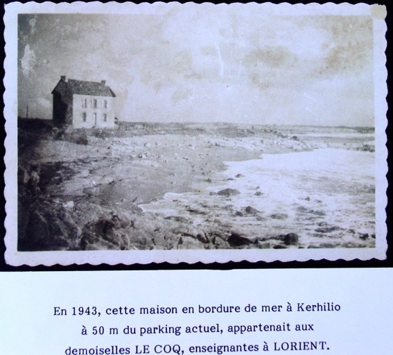 Maison dans la dune vers 1940, plage de Kerhilio.Immatriculation