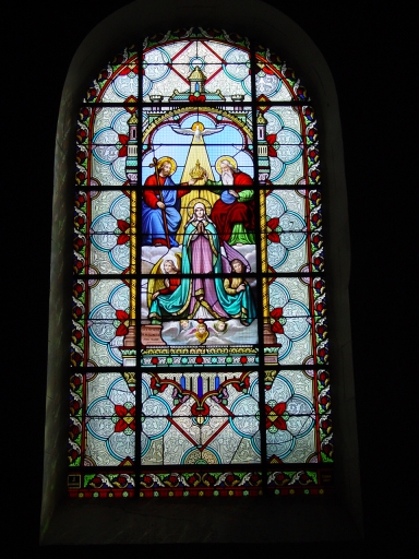 Verrières (4) baies 5, 7, 6 et 8 (verrières historiées) : Nativité de Marie ; Ascension de la Vierge ; Sainte Famille ; Couronnement de la Vierge,