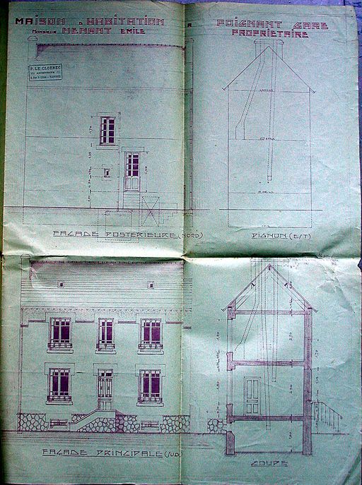 Elévation de la maison par P. Le Cloërec pour Emile Menant, 1932. AM Vannes 5 I 162.Immatriculation