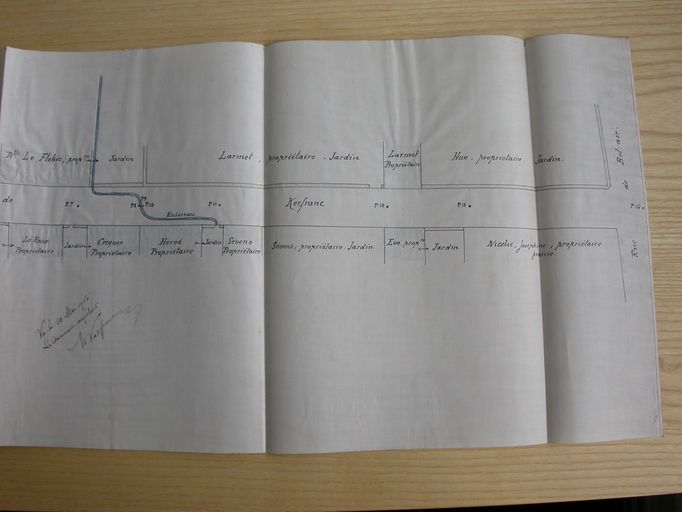 Classement de la rue de Kerfranc, plan par l'architecte de la ville Rousseau, 10 mai 1915, partie sud. AD Morbihan 3O 2181.Immatriculation