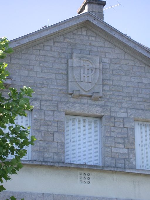 Vue de l'écu PTT sur la façade principale.Immatriculation