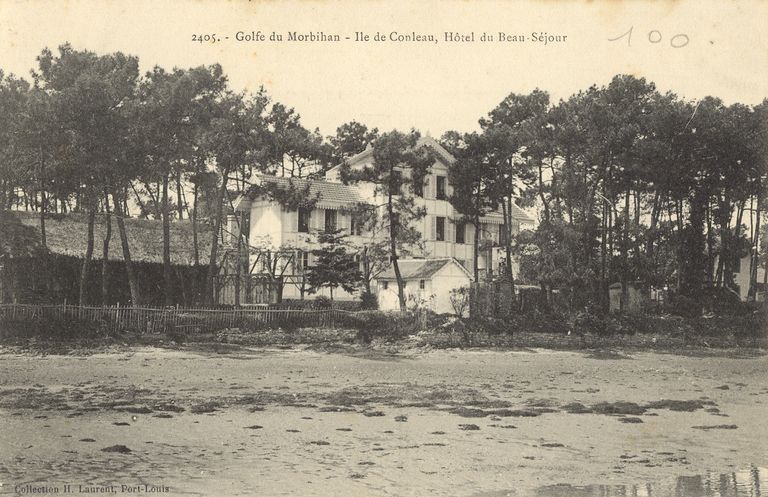Hôtel du Beauséjour, vers 1930 (?). Carte postale ancienne, H. Laurent, Port-Louis. (Fonds Privés).Immatriculation