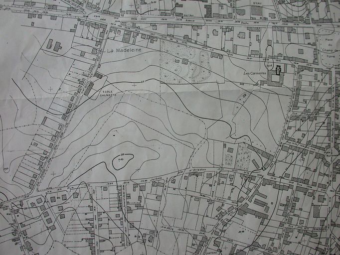 Plan de la ville par Guillerminet, Ministère de la Reconstruction, 1947 : détail parties Pargo, Bécel, Le Prateau. AM Vannes 9FI.Immatriculation