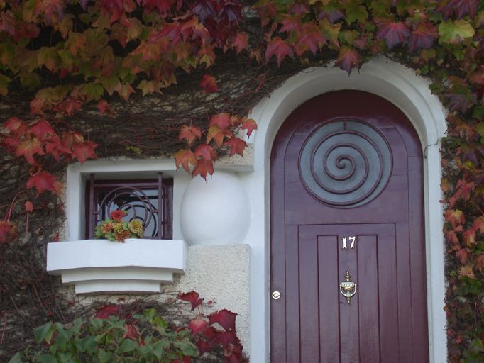 Détail de la porte d'entrée avec fenêtre des toilettes.Immatriculation