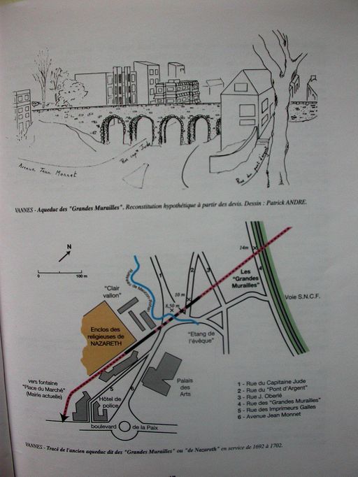 Tracé de l'ancien aqueduc dit des 'Grandes Murailles' ou de 'Nazareth'. Dessin Patrick André.Immatriculation