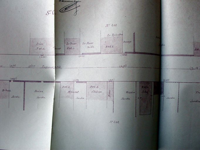 Projet de classement dans la voirie urbaine de la 2e impasse Guyot-Jomard. Plan de Thiévard, 14 octobre 1931. Partie médiane (A.D. 56, 3O 2182)Immatriculation