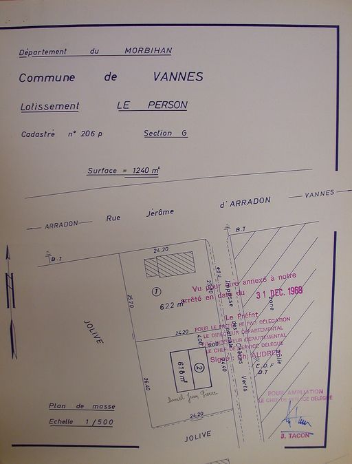 Plan du lotissement Le Person, 1969. AM Vannes 1O221.Immatriculation