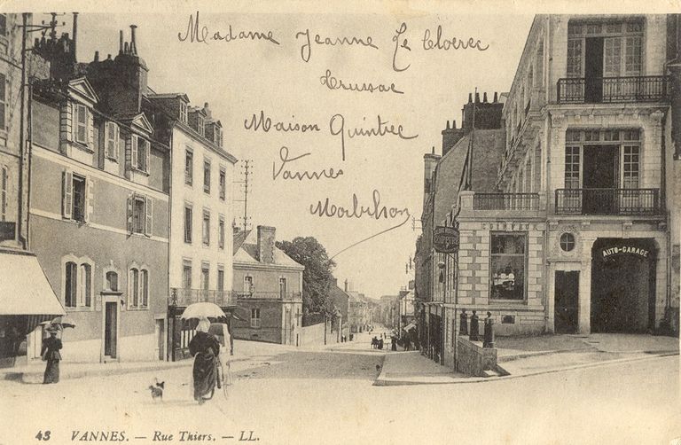 Vue de la rue Thiers, vers 1900. En premier plan, la maison avant transformation. Edition LL. Fond privé.Immatriculation