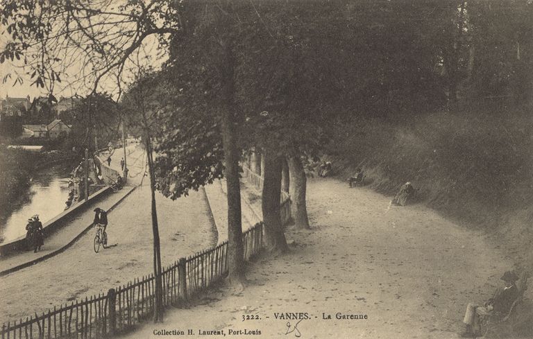 Le jardin de la Garenne : allées parallèles à la pente. Carte postale ancienne. Collection H. Laurent, Port-Louis. Fonds privé.Immatriculation