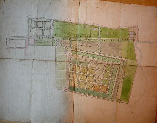 Plan aquarellé de l'enclos de Nazareth par Dandré (?), 1737. AD Morbihan N737.Immatriculation