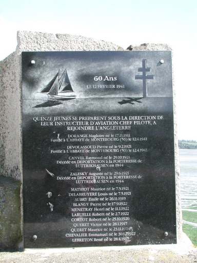 Plaque commémorative en marbre noir, apposée sur le musoir de la jetée, en mémoire des évadés de 1941 pour rejoindre la France Libre en Grande-BretagneImmatriculation