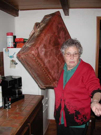 Marguerite Le Saux portant la valise BonaparteImmatriculation
