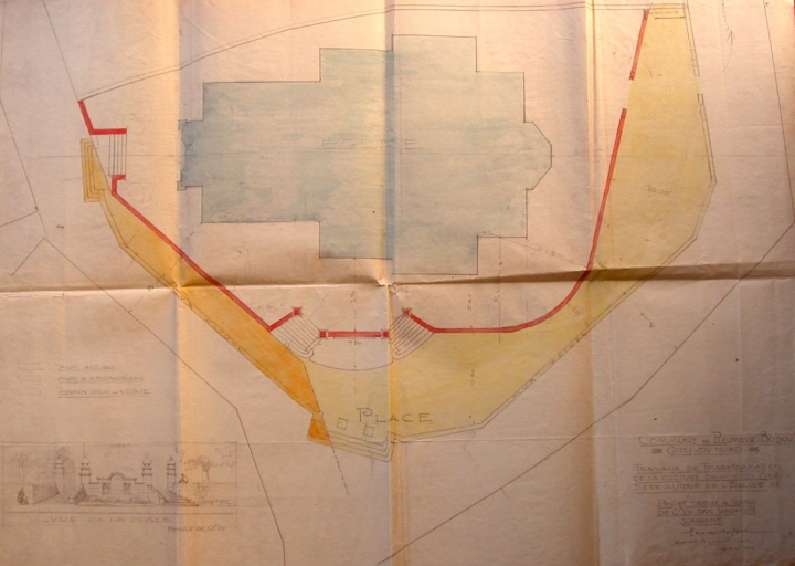 Plan des travaux de réfection et de transformation de l'enceinte de l'ancien cimetière, 1921 (Georges-Robert Lefort, architecte / AD 22)Immatriculation