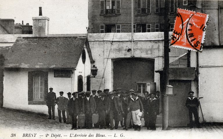 L'arrivée des Bleus à la caserne du Deuxième Dépôt des équipages de la flotte. Carte postaleImmatriculation