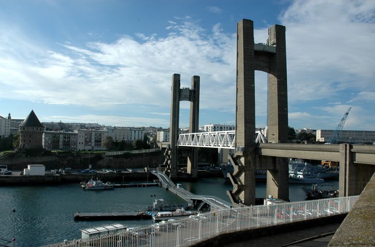 Vue générale du pont de Recouvrance permettant de franchir la Penfeld et l'Arsenal. A gauche sur la photographie : la tour TanguyImmatriculation