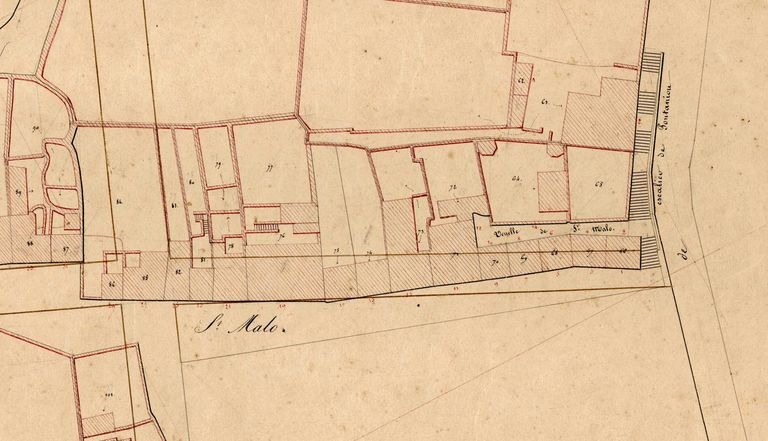 Détail de la rue de Saint-Malo, extrait de la première feuille, section C1 dite de Recouvrance du cadastre parcellaire de Brest, 1830Immatriculation