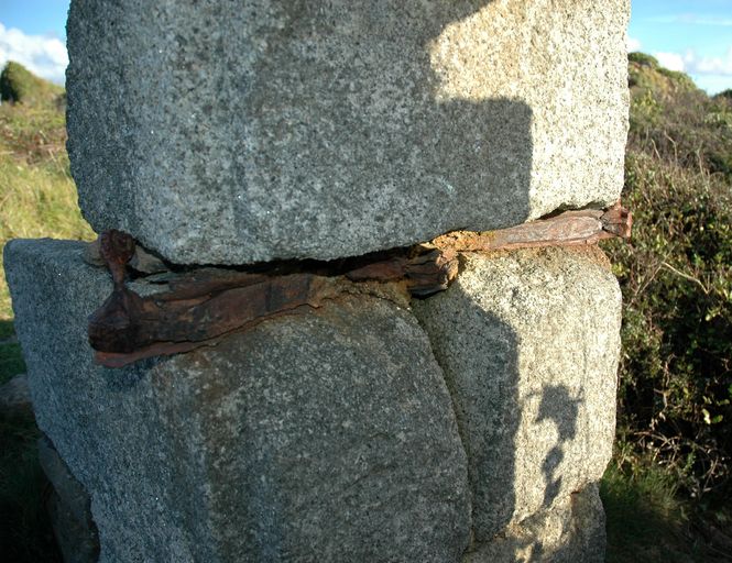 Vue du fort de la Fraternité : les gonds en rouillant font exploser le graniteImmatriculation