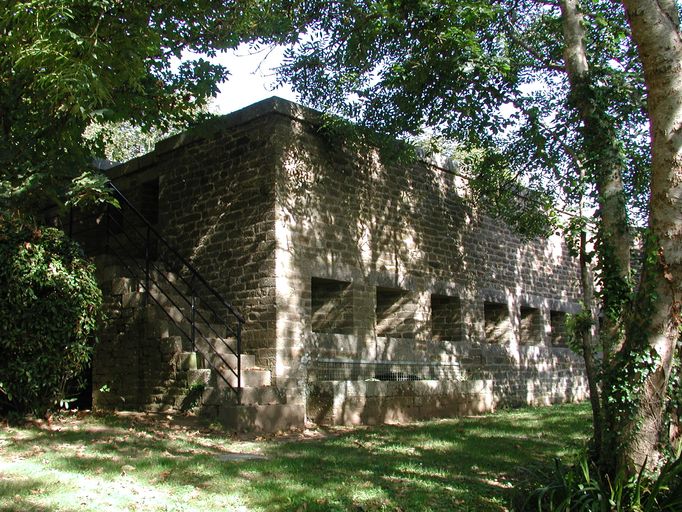 Vue du fort du Dellec : mur d'enceinte percé de créneaux de fusilladeImmatriculation
