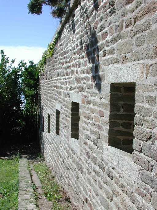 Vue du fort du Dellec : mur d'enceinte ouest percé de créneaux de fusilladeImmatriculation