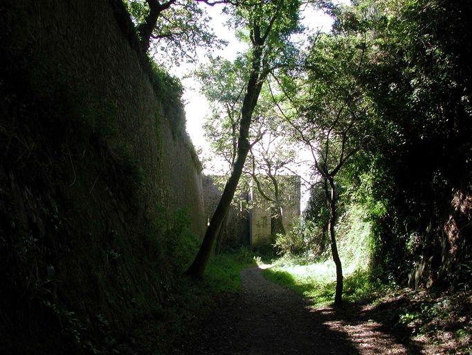 Vue du fort du Dellec : fossé sec flanqué par le bastionnetImmatriculation