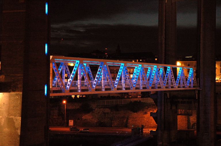 Vue du pont de Recouvrance la nuit : le tablier mis en lumièreImmatriculation