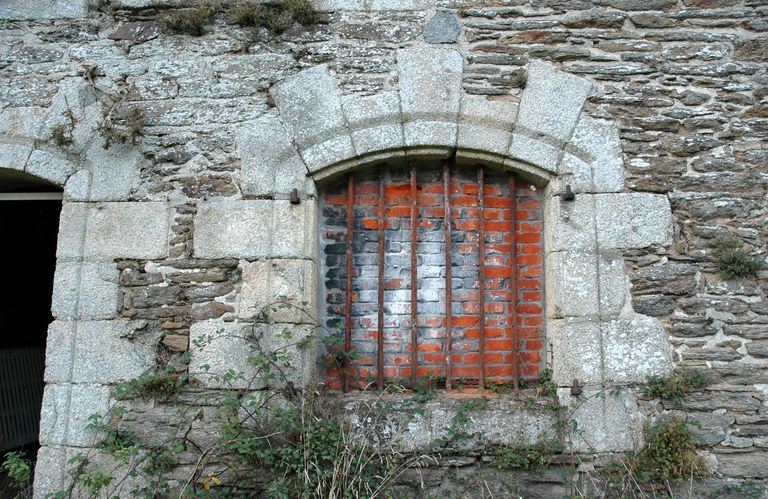 Vue du fort de Penfeld : exemple de caserne voutée avec entresol sur corbeaux accessible par une échelle. La pièce dotée d'une cheminée au rez-de-chaussée comporte une porte et deux baies ouvrant sur la place d'armesImmatriculation