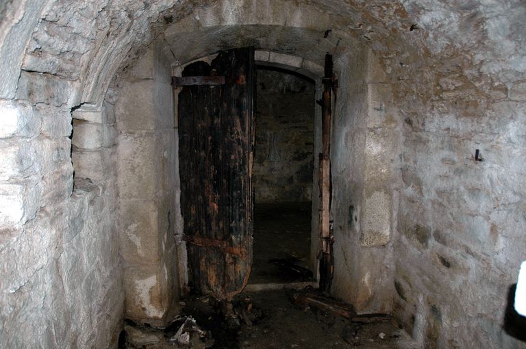 Vue du fort de Penfeld : porte à deux battants située entre la caponnière (est) et la galerie de contrescarpe (photographie prise depuis la caponnière)Immatriculation