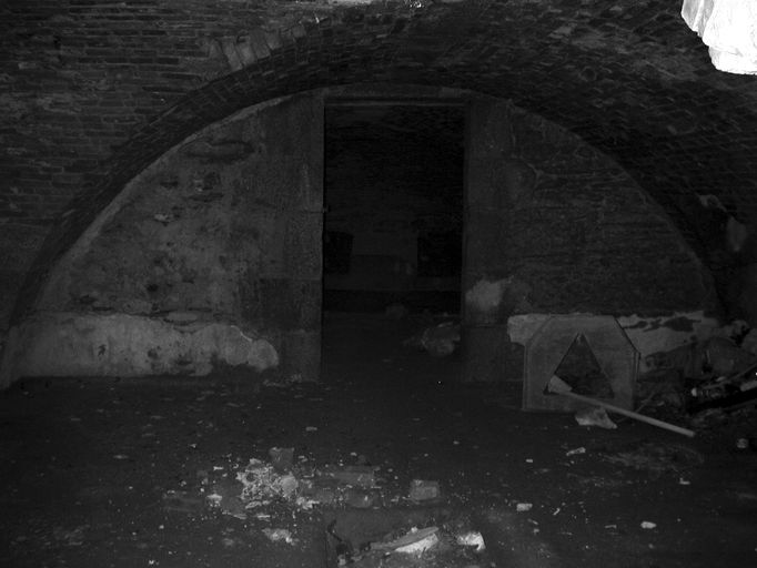 Roscanvel, pointe de Cornouaille : tour-modèle n° 1, premier niveau voûté en briques, pilier centralImmatriculation
