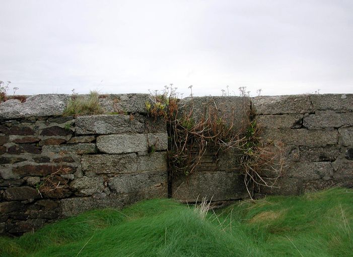 Vue de la batterie de Cornouaille : embrasure comblée pour permettre le tir à barbette (c'est à dire au dessus du parapet)Immatriculation