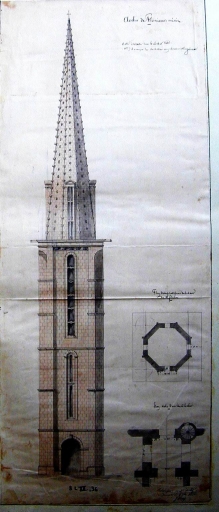 Le clocher. Relevé par Joseph Bigot, 1855 (A. E. Quimper, 8 L XII, 36)Immatriculation