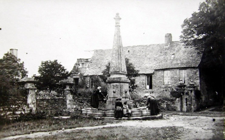 Elévation ouest des anciens bâtiments conventuels et fontaine. Carte postale, vers 1900 (A.D. Finistère, 2 Fi 202)Immatriculation