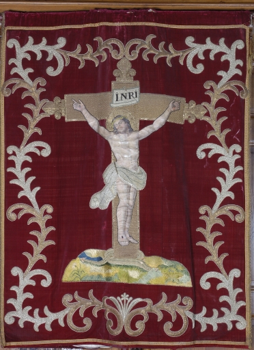 Bannière de procession 1 : Saint Martin ; Christ en croix,