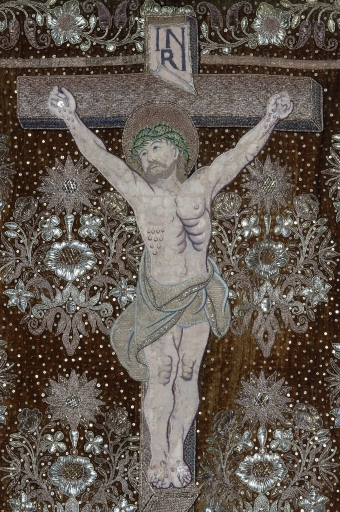 Bannière de procession : Christ en croix ; Saint Pierre,