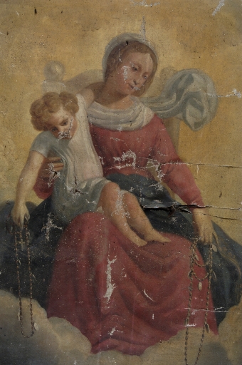 Tableau d'autel : Donation du Rosaire à saint Dominique et à sainte Catherine de Sienne,