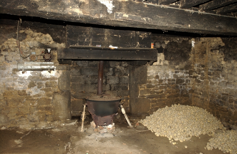 Intérieur de l'ancien logis : mur est et cheminéeImmatriculation