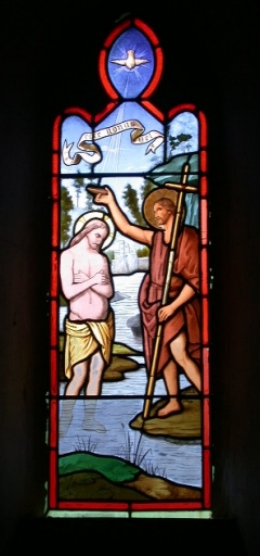 Verrières figurées baies 8, 10, 12 : Baptême du Christ, de Clovis et de Charlemagne ou saint Louis,