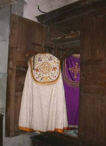 Armoire de sacristie, chapier et 3 coffres,