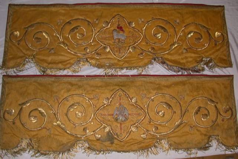 Garniture de dais de procession : panneaux portant l'Agneau pascal et le Pélican mystiqueImmatriculation
