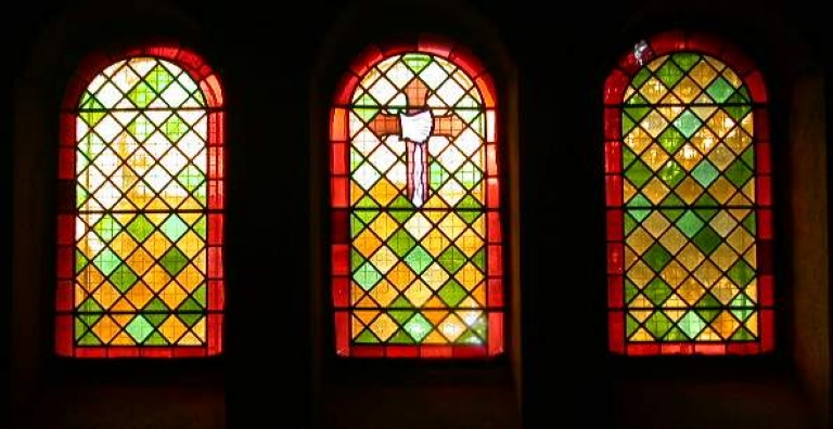 Ensemble des 9 verrières décoratives du transept et de la nef,